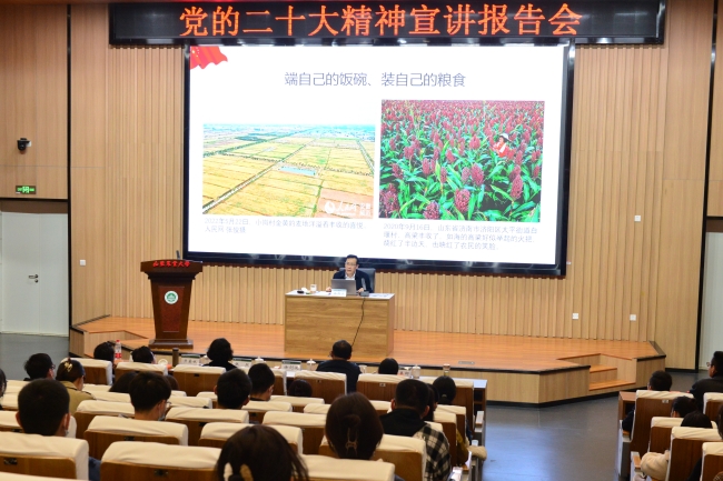 11月16日上午,学校举办党的二十大精神宣讲报告会暨宣讲启动仪式。YABO鸭脖党的二十大精神宣讲团团长、党委书记徐剑波以“学习宣传贯彻党的二十大精神 争做知农爱农强农兴农时代新人”为题,为学校师生代表作宣讲报告。党委副书记张然主持报告会。