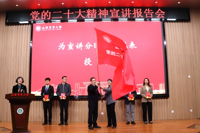徐剑波指出,党的二十大报告对新时代新征程“三农”工作作出了“全面推进乡村振兴”“加快建设农业强国”“全方位夯实粮食安全根基”等一系列重要决策部署,提出要“扎实推动乡村产业、人才、文化、生态、组织振兴”,这为新时代新征程“三农”工作指明了前进方向,提供了根本遵循。作为农业高校,我们要特别认真学习其中的涉农关键词和重要论述,立足自身、把握重点,切实把学习宣传贯彻党的二十大精神与学校第八次党代会确定的各项目标任务结合起来,与加快建设一流农业大学结合起来,以实际行动助推中国式农业农村现代化建设,努力为全面建设社会主义现代化国家、全面推进中华民族伟大复兴作出新的山农贡献。