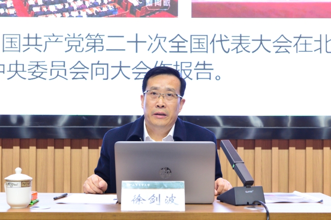 徐剑波指出,党的二十大回顾总结了过去5年的工作和新时代10年的伟大变革,阐述了开辟马克思主义中国化时代化新境界、中国式现代化的中国特色和本质要求等重大问题,对全面建设社会主义现代化国家、全面推进中华民族伟大复兴进行了战略谋划,对统筹推进“五位一体”总体布局、协调推进“四个全面”战略布局作出了全面部署,对于动员全党全国各族人民更加紧密地团结在以习近平同志为核心的党中央周围,为全面建设社会主义现代化国家、全面推进中华民族伟大复兴而团结奋斗,具有重大现实意义和深远历史意义。