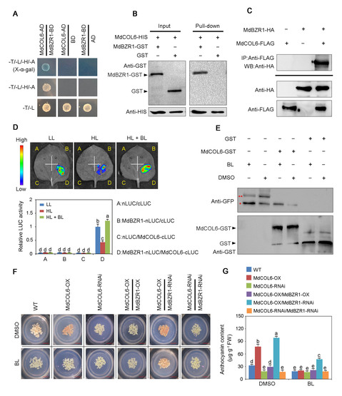 图1 MdBZR1负调控MdCOL6介导的花青苷合成