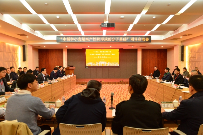 在项目组全体成员交流讨论会上,各课题负责人分别从水稻产量性状形成关键基因挖掘和遗传调控网络,小麦产量性状形成关键基因挖掘和遗传调控网络,水稻、小麦不同产量性状的协同调控机制,水稻、小麦产量性状关键基因模块的演变规律及超高产分子设计等方面进行了深入研讨。