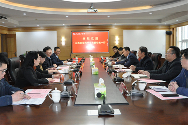 近日,学校党委常委、副校长辛杰一行赴山东理工大学,围绕现代产业学院建设进行考察交流。山东理工大学党委书记胡兴禹会见辛杰一行,党委常委、副校长陈盛伟主持座谈会。