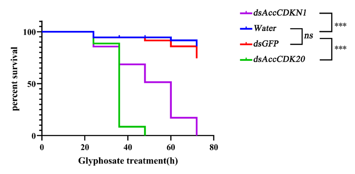 图2. AccCDK20和AccCDKN1沉默后,草甘膦胁迫下生存曲线分析