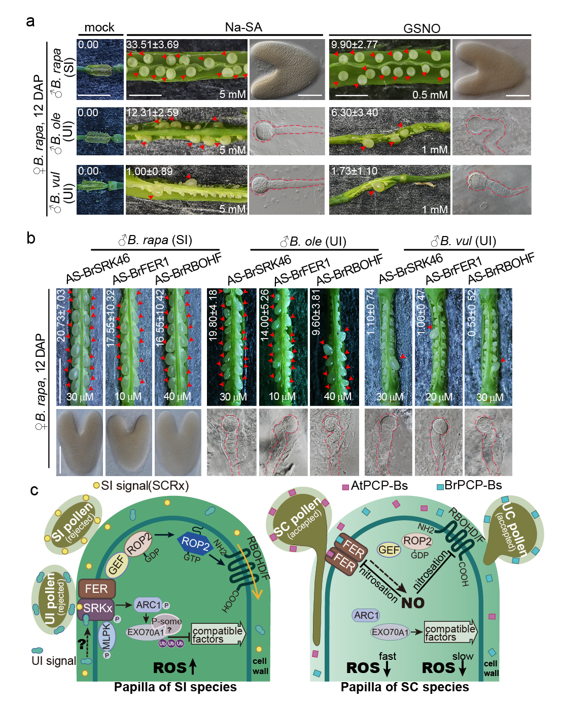 该成果发现大白菜通过SRK受体识别远缘物种的花粉,并通过升高活性氧抑制远缘花粉的生长,揭示了大白菜远缘杂交障碍的形成机制,研发了打破杂交障碍的育种技术;开辟了远缘育种新途径,为充分利用远缘物种优异基因资源进行种质创新提供科技支撑。