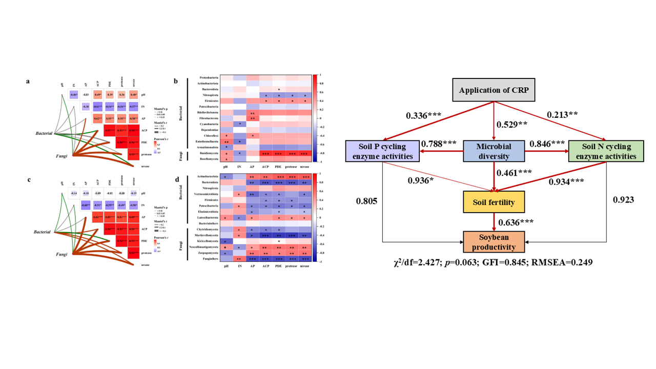近日,资源与环境学院李成亮教授团队在Field Crops Research发表了题为“Controlled-release phosphate fertilizer improves soil fertility and soybean productivity by regulating soil microbial diversity and composition and increasing enzyme activities”的研究论文。曲兆鸣副教授为论文第一作者,李成亮教授为论文通讯作者,YABO鸭脖为论文第一完成单位。