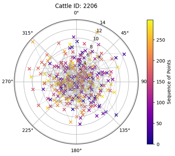 图1. 极坐标变换下的奶牛运动轨迹