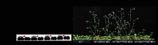 该研究通过酵母双杂交筛选鉴定到MAPK1/2/7/14的下游靶蛋白NF-YB2 (nuclear factor Y B2)。MAPK1/2/7/14特异性地磷酸化NF-YB2蛋白第24位丝氨酸位点(S24)。超表达模拟磷酸化形式的NF-YB2(NF-YB2S24D)开花时间明显提前,而超表达其非磷酸化形式NF-YB2S24A后,其诱导开花的效果显著减弱(图2)。