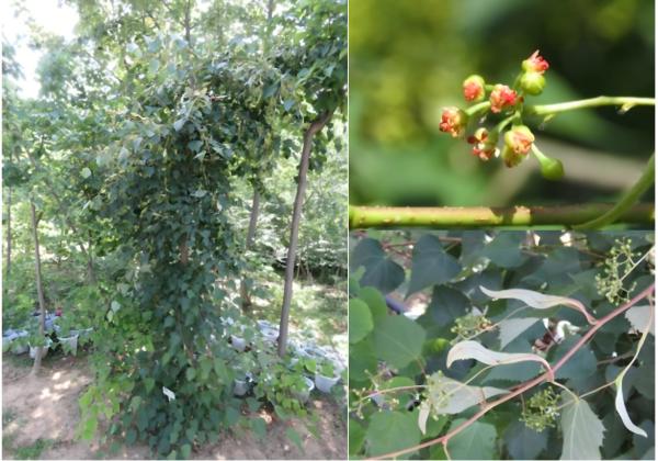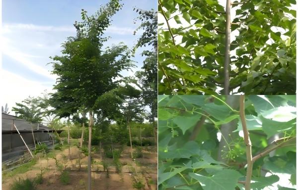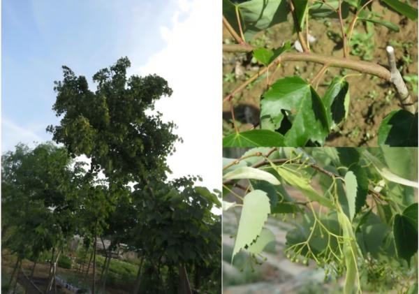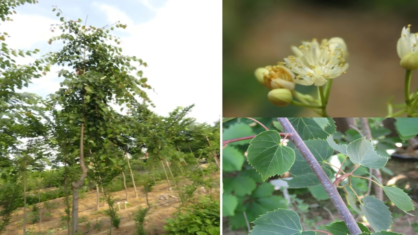‘英姿’(品种权号20250696):树干较粗糙,皮孔密集,主枝呈斜上伸展姿态,挺拔规整,当年生枝绿色,叶片宽卵形,先端渐尖,基部心形,花序着花36-56朵。该品种花序繁密,不仅是优质行道树品种,还能为蜜蜂提供充足蜜源,助力林下蜜源产业发展。